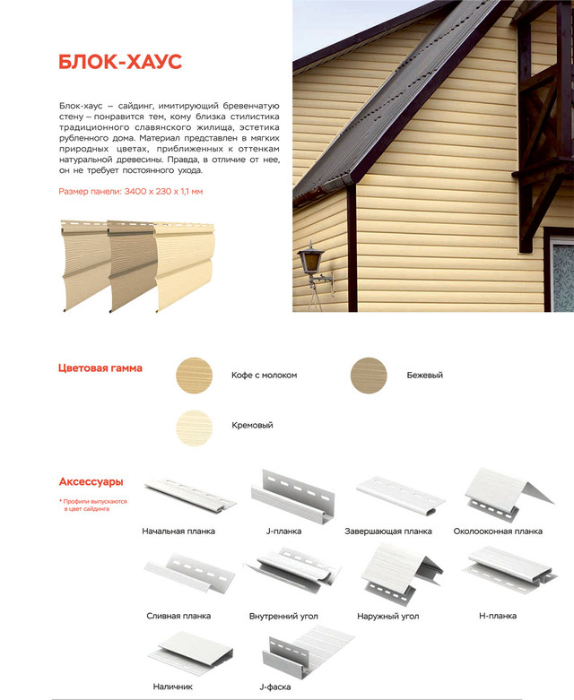 Блок-Хаус – різновид вінілового сайдинга Ю-Пласт імітує колоду. Володіє всіма перевагами, що і сайдинг «корабельний брус». Дозволить змінити зовнішній вигляд вашого будинку не вдаючись до істотних фінансових і трудових витрат.