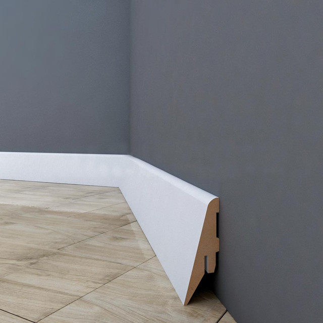 Модель мдф-плінтуси Білий польський, відноситься до моделей з класичним дизайном. Акуратна форма покрита суцільним білим кольором без додаткових текстур і дерев'яних волокон, підійде до будь-якого дизайну приміщення та кольору стін.