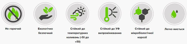 захищені від будь-яких атмосферних впливів, не вигорають під впливом УФ випромінювання,