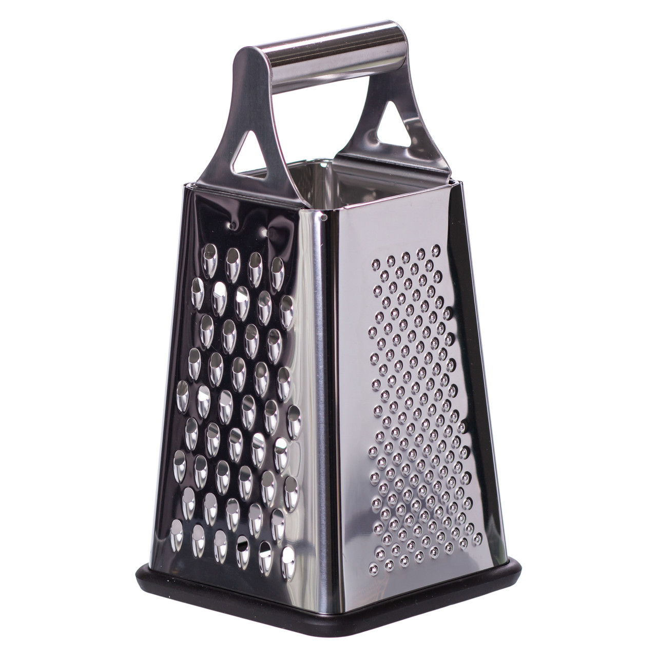 Чотиристороння кухонна терка — це універсальний і незамінний інструмент для кожної кухні. Її практичність і багатофункціональність роблять її ідеальним рішенням для повсякденної кулінарії: від приготування салатів до натирання сиру для запіканок і десертів. Завдяки чотирьом різним сторонам, терка справляється з широким спектром завдань — подрібнює, натирає, шинкує як рівними, так і хвилястими скибочками. Це не просто кухонний аксесуар, а повноцінний помічник на кожному етапі приготування їжі. Виготовлена з високоякісної нержавіючої сталі, стійка до корозії і зберігає свою гостроту тривалий час. Елегантний корпус надає виробу стильний і сучасний вигляд, який буде естетично виглядати на будь-якій кухні. Класична металева ручка забезпечує зручний захват, а міцна конструкція гарантує довговічність. Основні характеристики ручної терки з нержавіючої сталі: Матеріал терки: нержавіюча сталь; Матеріал ручки: нержавіюча сталь; Розмір: 13×13×24,5 см; Кількість робочих сторін: 4; Ширина робочої поверхні: 6 см; Довжина робочої поверхні: 13 см; Протиковзка основа: є. Особливості металевої терки для овочів і фруктів: 4 робочі сторони; Зручна металева ручка для комфортного захоплення; Міцний і естетичний корпус; Підходить для овочів, сиру, шоколаду, фруктів, горіхів та ін.; Просте очищення — можна мити вручну або в посудомийній машині. Чотиристороння терка з нержавіючої сталі — це поєднання стилю, якості та функціональності. Вона стане незамінним помічником на кухні, з легкістю справляючись із щоденними завданнями з приготування їжі. Незалежно від того, чи готуєте ви вдома, чи працюєте на професійній кухні — така терка забезпечить комфорт та ефективність у роботі.
